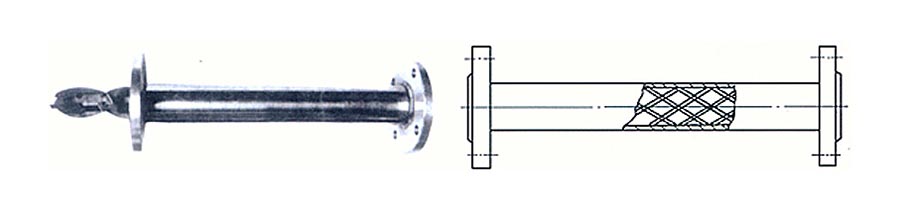 SK單元由單孔道左、右扭轉(zhuǎn)的螺旋片組焊而成,它的技術(shù)性能:最高分散程度≤10 u m,液—液、液—固相的不均勻度系數(shù)為α√ x≤1-5%。